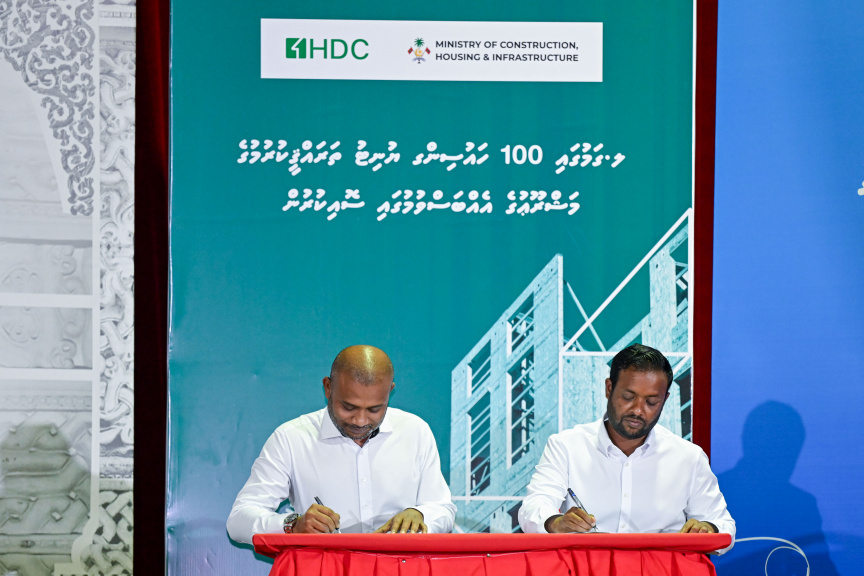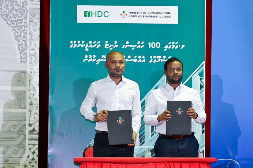 The agreement was signed by Minister of Construction, Housing and Infrastructure Dr. Abdulla Muthalib and HDC’s Deputy Managing Director Mohamed Asbaah Ali Naseer.