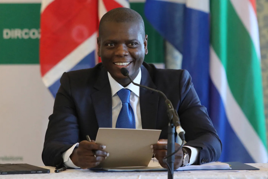 South African Foreign Minister Ronald Lamola speaks to the media alongside UK Foreign Secretary David Lammy, November 5, 2024.