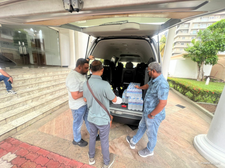 Officials from the Maldivian High Commission in Sri Lanka load bottled water into a vehicle. (Photo/Maldivian High Commission in Sri Lanka)