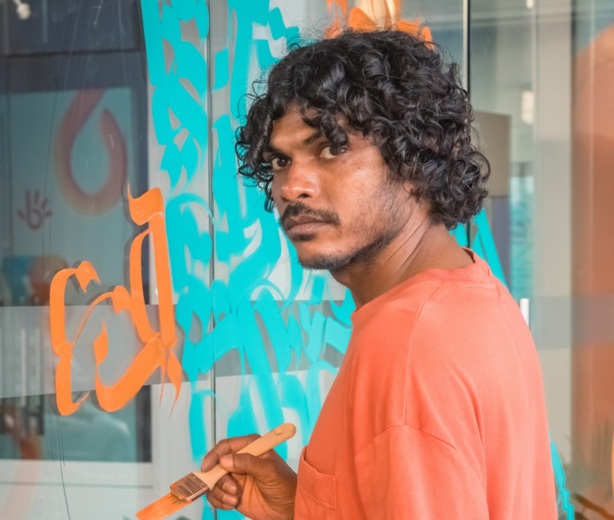 The artwork is the creation of young Maldivian calligrapher Hassan Najih, who collaborated with Dhiraagu to craft a design that reflects the spirit of Ramadan while staying true to the company’s brand identity. By working exclusively within Dhiraagu’s colour palette, Najih ensured the mural seamlessly aligns with its corporate identity.