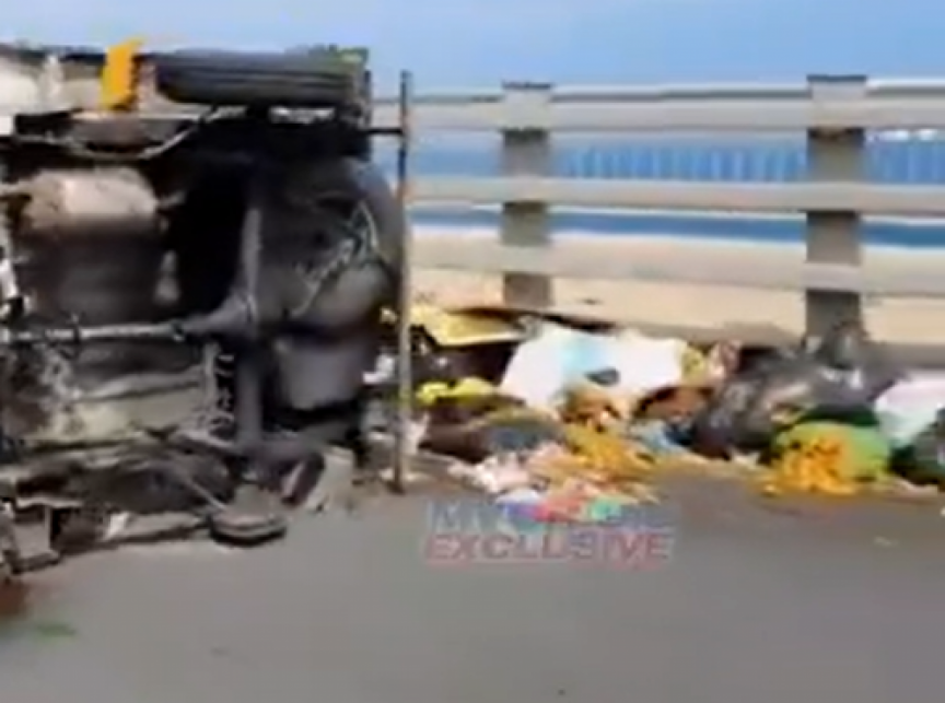 Footage of the accident has been circulating on social media, showing the large pickup truck flipped on the bridge. It also shows traffic police officers active at the scene, where a significant amount of waste had spilled across the roadway.