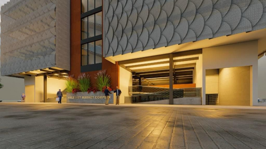 A rendering of the modern new Male' Wet Market Complex on the land where the Male' Local Market is currently located: Agreement signed with TrustEng Maldives Private Limited for MVR 127 million, March 15, 2026. (Photo/Ministry of Construction, Housing and Infrastructure)