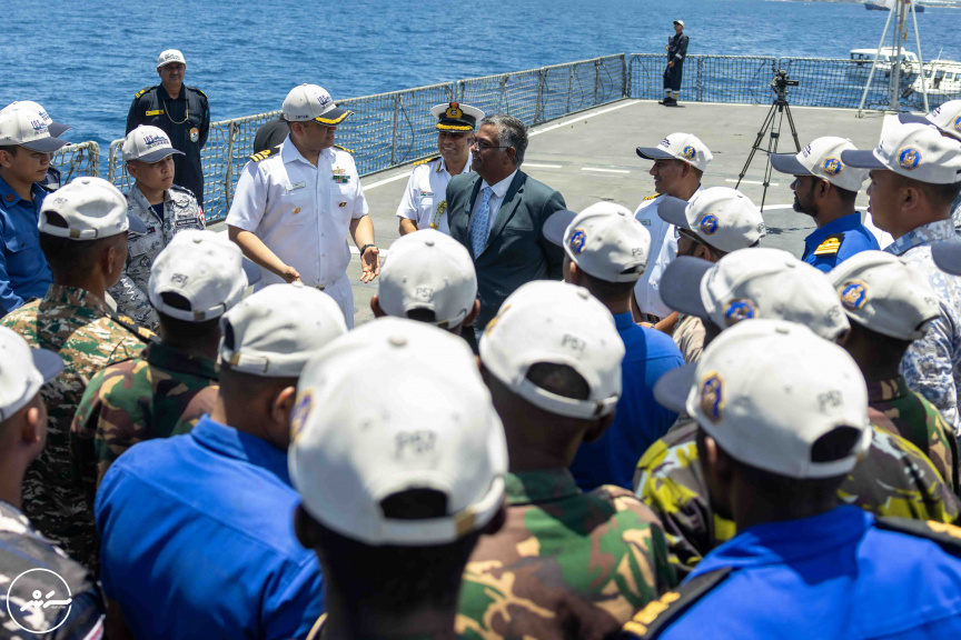 Indian Navy’s offshore patrol vessel INS Sunayna, formally redesignated as Indian Ocean Ship (IOS) SAGAR, arrived in Male’ on Monday, with naval personnel from 16 countries.