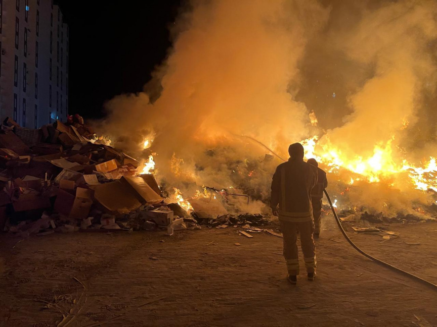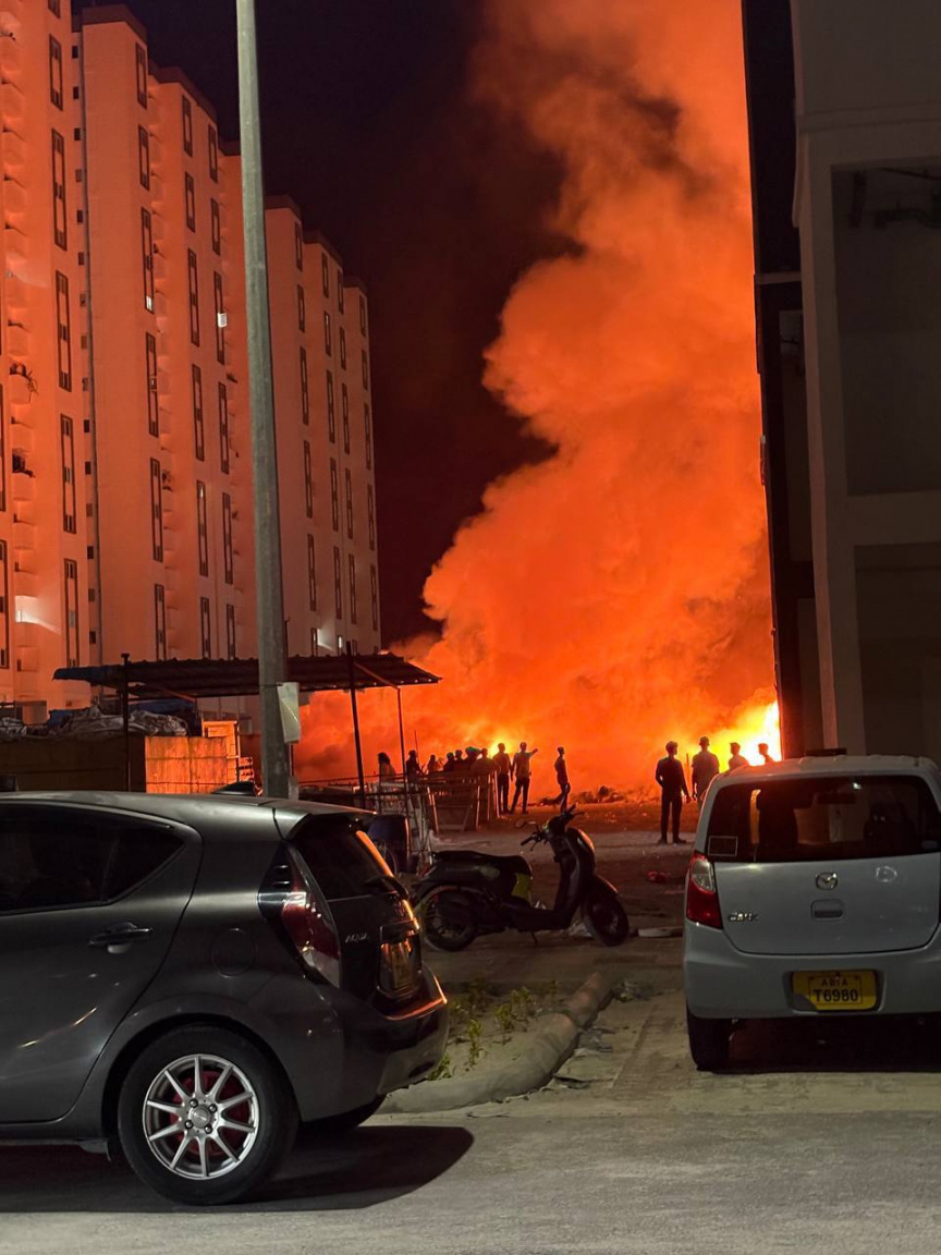 Firefighters responded to a blaze near the ‘Gedhoruveriya’ flats in Hulhumale’ Phase II on early Saturday, after a large pile of waste near the towers caught on fire.