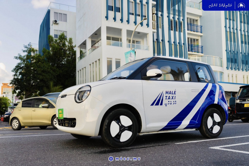A car in the Male' Taxi Line fleet: The taxi service is still being provided free-of-charge following the end of one-week promotional period. (Photo/MTCC)