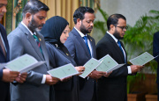 Among those taking oath were government spokesperson Heena Waleed, now appointed Minister of Arts, Culture and Heritage, and Dr. Iruthisham Adam, the Maldives’ Ambassador to the UK, who has been appointed Foreign Minister.