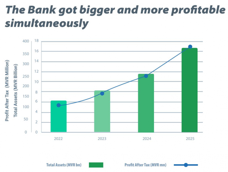 But milestones create expectations. At MVR 16.65 billion in assets and over 218,000 customers, MIB now operates at a scale where the challenges ahead are qualitatively different from those of three years ago. Maintaining asset quality as the portfolio matures, deepening the corporate and SME franchise, navigating economic dynamics, and continuing to lead on digital innovation will define the next chapter.
