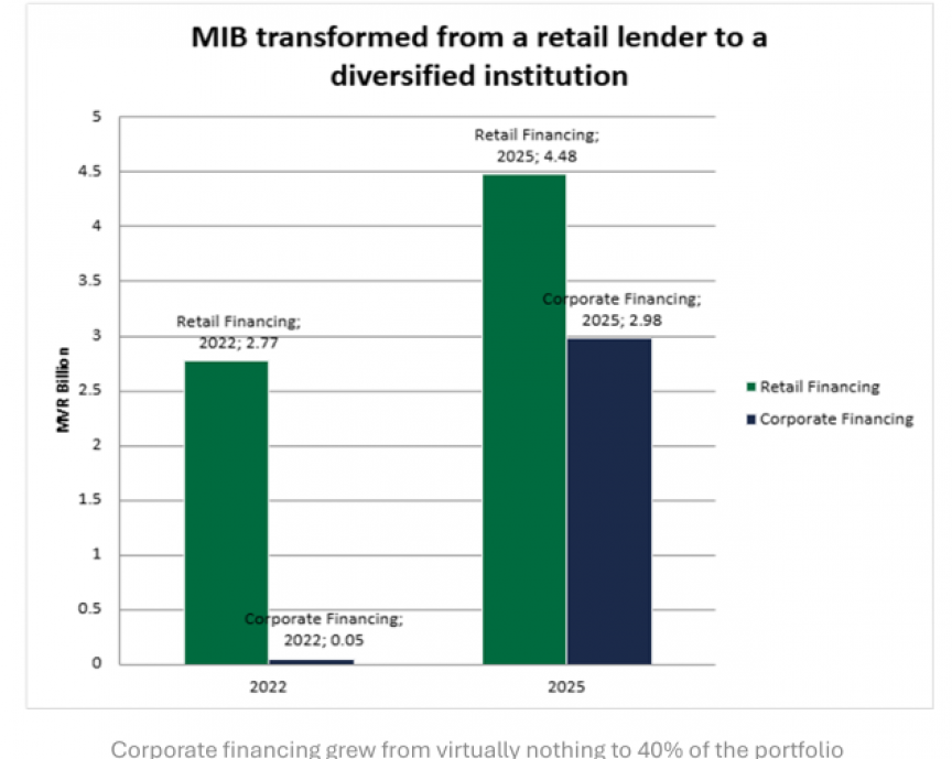 Corporate financing now represents 40% of the portfolio, deployed across tourism infrastructure, resort development, guesthouse expansion, asset refinancing, trade finance, and construction. This is not growth for its own sake. It represents MIB’s transformation from a retail-focused institution into a full-service bank financing the productive sectors of the Maldivian economy.