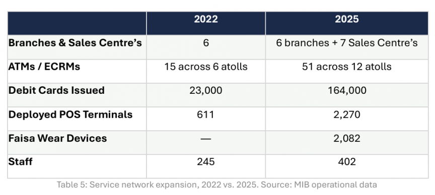 Numbers on a balance sheet ultimately depend on whether customers can actually access the bank. In a country of 1,200 islands spread across 20 atolls, physical reach is not a convenience, it is the difference between financial inclusion and exclusion.