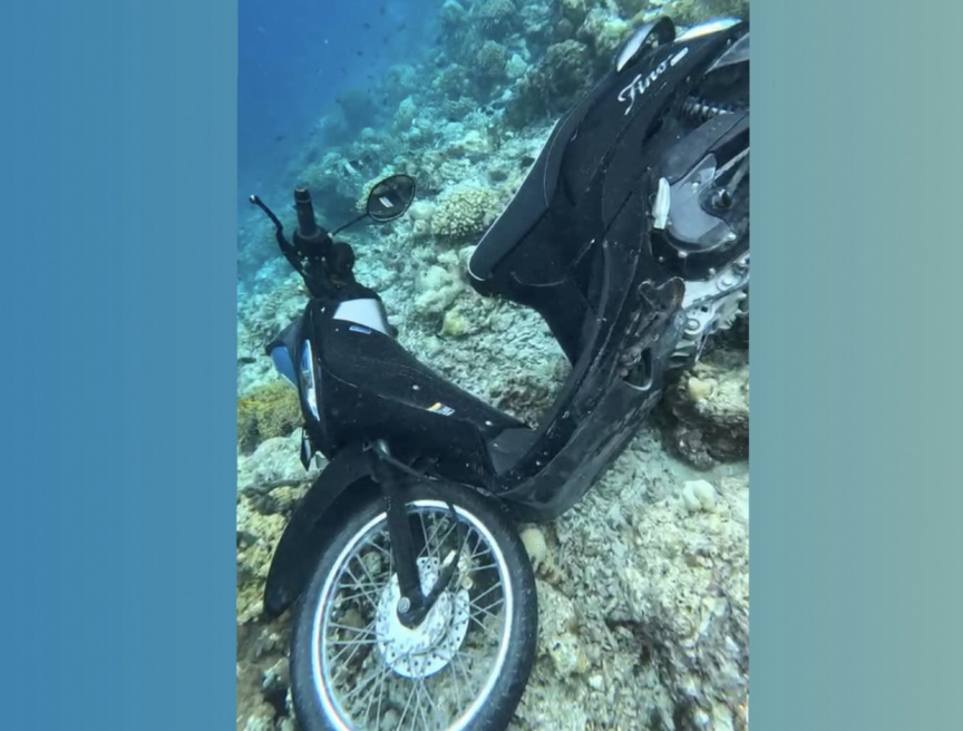 The Yamaha Fino motorcycle was dumped in the waters towards the end of the island’s lagoon. Ibrahim said that he retrieved the motorcycle from underwater on Thursday.