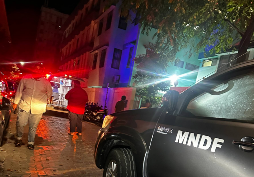 Police and Maldives National Defense Force (MNDF) were seen operating at the hostel at around 02:30 am.