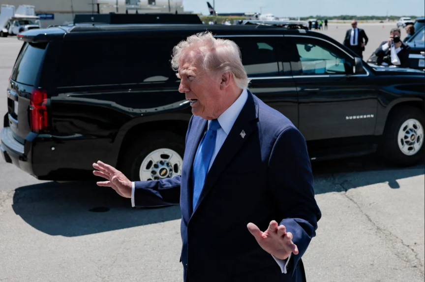 US President Trump speaks to the media before departing Palm Beach International Airport in West Palm Beach, Florida, US, on April 25, 2026. (Photo/Reuters)
