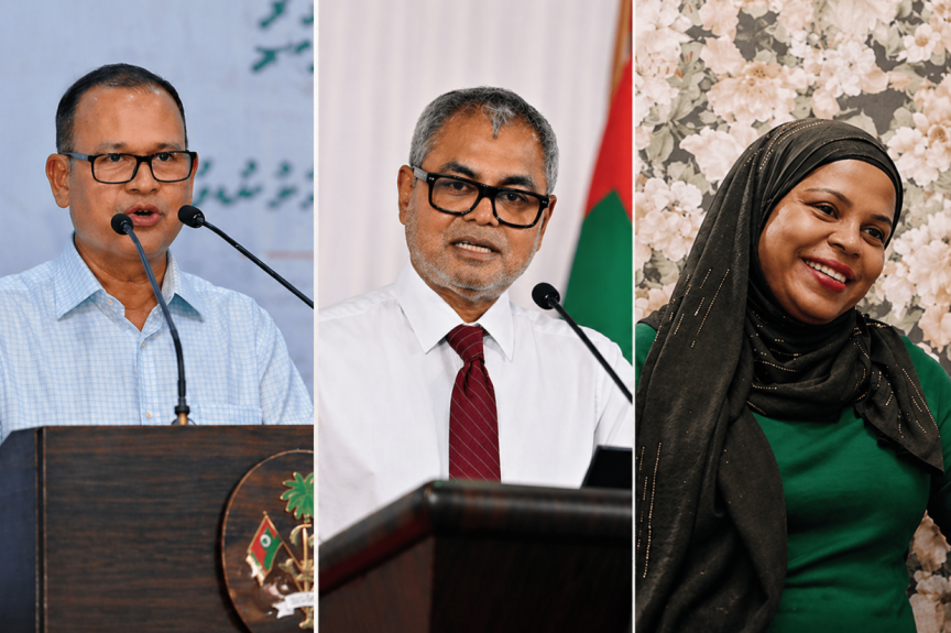 (L-R) Former Local Government Minister Adam Shareef Umar, former Environment Minister Thoriq Ibrahim and former Attorney General Fathimath Dhiyana Saeed.