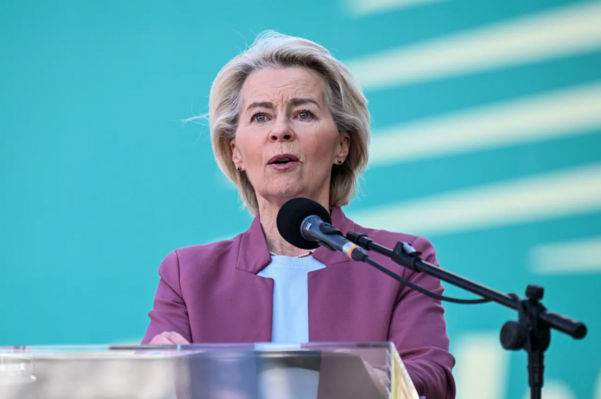 Ursula von der Leyen at CDU/CSU parliamentary group press conference in Berlin, April 27, 2026. (Photo/Reuters)