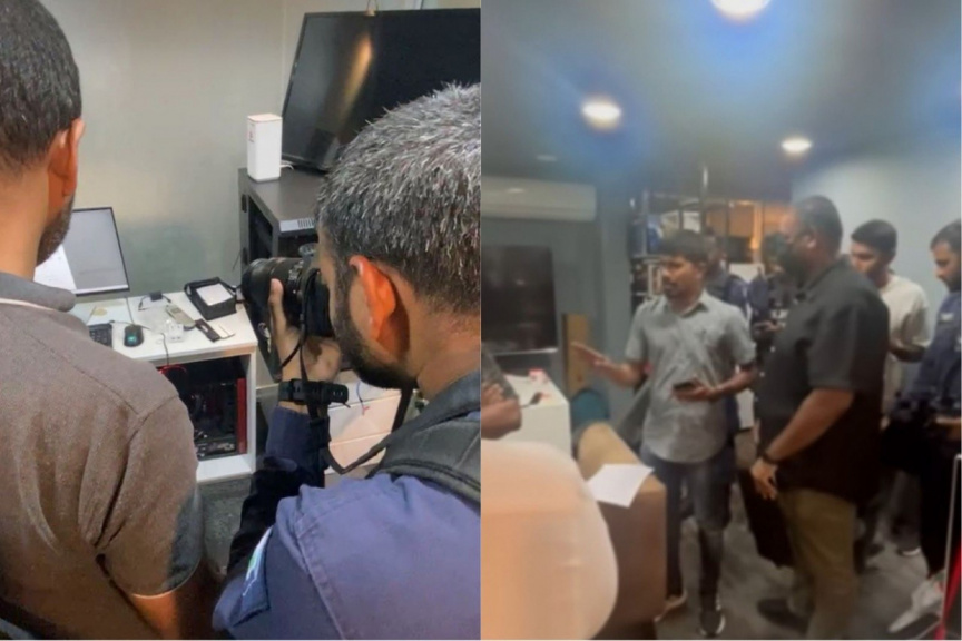 Police raided the newspaper’s office on Monday night in connection with the documentary ‘Aisha’. During the search, officers seized several electronic devices, making it difficult for Adhadhu to continue its operations.