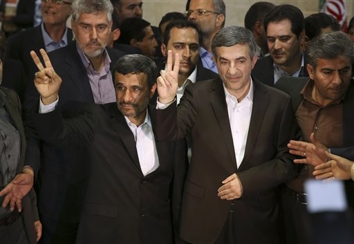 Mashaei has long been Ahmadinejad's close confidant, and the president's son is married to Mashaei's daughter. State TV showed a smiling Ahmadinejad accompanying Mashaei as he submitted his papers Saturday, and the president raised his aide's hand in a gesture of support.