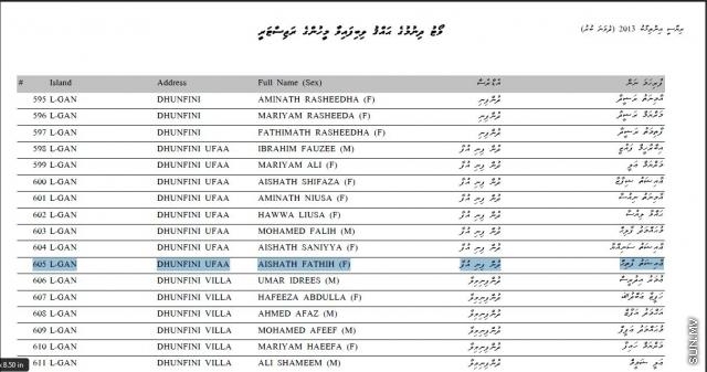 He explained that Aishath Fathih of Dhunfini Ufaa, Laamu Gan, was included in the register, but there is no one by that name living in Dhunfini Ufaa, and that identity card number for Aishath Fathih included in the register was in fact the identity card number for Ahmed Fathih of Dhunfini Ufaa.