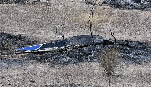 Crews extinguished a fire that erupted in vegetation surrounding the remote crash site, about 100 miles northwest of Los Angeles.