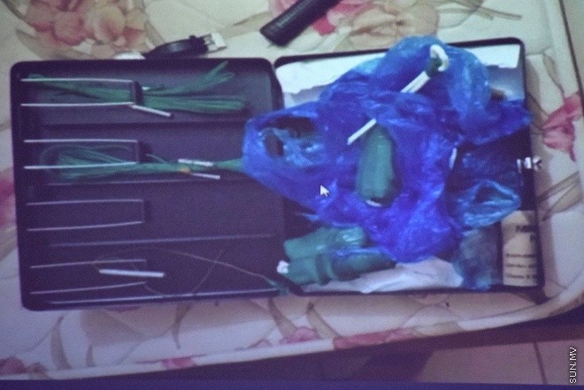 One of the pictures the Police shared with the media shows tools used to make explosives inside a box placed on a mattress. And the other picture shows bullets, mobile phones and tools used to make an IED.
