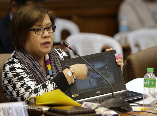 In a committee hearing last week, de Lima presented a former Filipino militiaman who testified that Duterte, when he was mayor, ordered him and other members of a hit squad to kill criminals and opponents in gangland-style assaults that left about 1,000 dead.