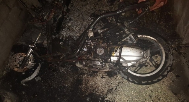 A motorbike parked in a house in Hithadhoo, Addu City has been burnt in an arson attack.