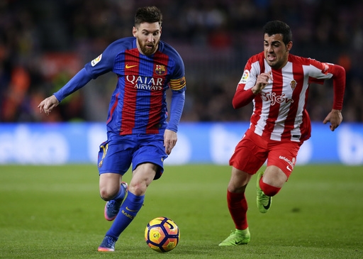 MADRID (AP) — On a night marked by the surprise announcement that coach Luis Enrique will leave Barcelona at the end of the season, his team routed relegation-threatened Sporting Gijon 6-1 to return to the top of the Spanish league on Wednesday.