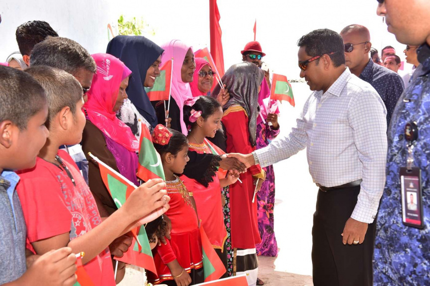 President Abdulla Yameen Abdul Gayoom (C) at G. Dh. Madaveli on August 7, 2018. (Photo/President's Office)