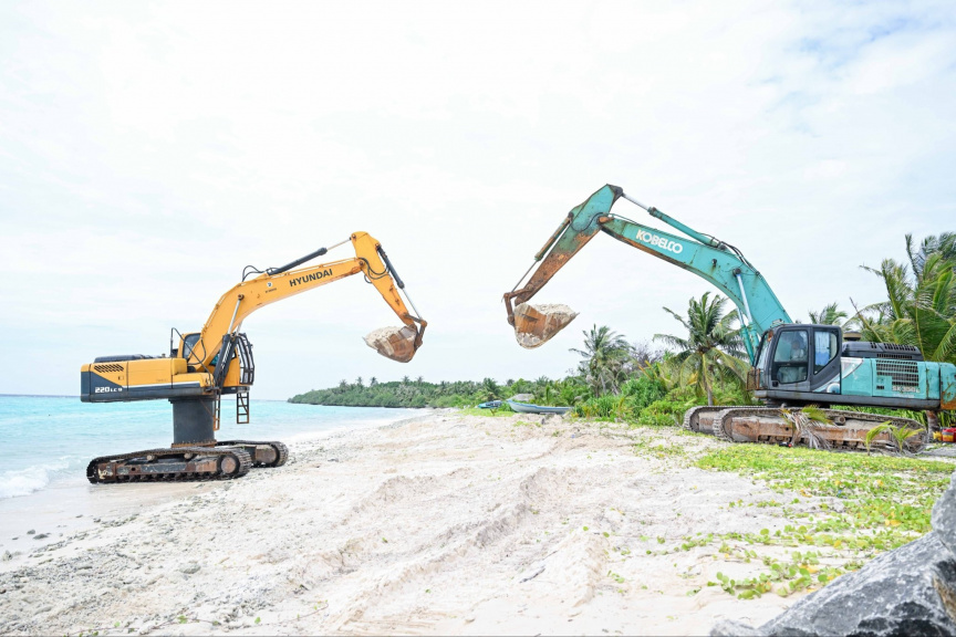 Two excavators poised to commence the physical work for the Sh. Milandhoo airport's land reclamation on October 15, 2025. (Photo/President's Office)