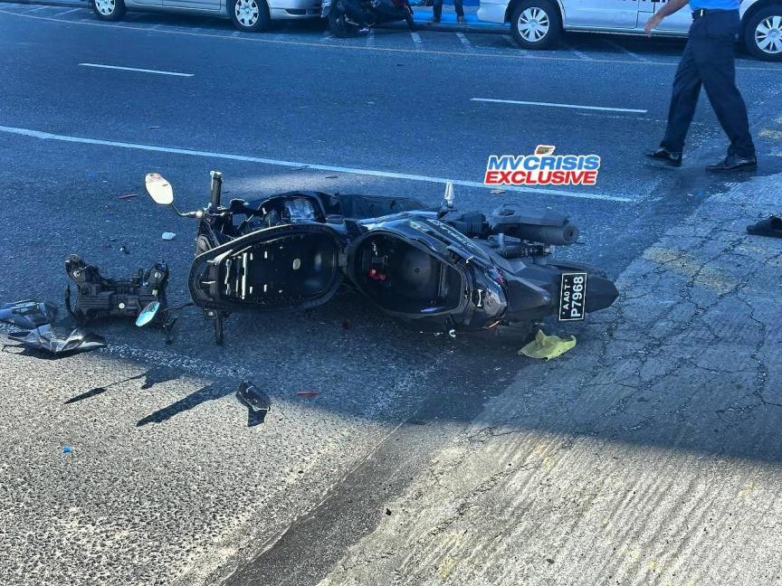Two young men sustained serious injuries on Tuesday, after the motorcycle they were driving crashed into a car. A police spokesperson said the accident was reported at around 02:16 pm on Tuesday, and involved a speeding motorcycle that crashed into the back of a car. The accident took place at the junction of Boduthakurufaanu Magu and Hithigas Magu in Male’ City. The police